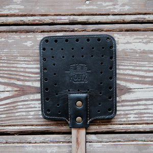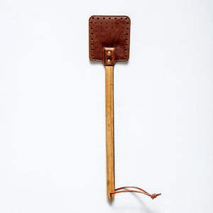 While the first patent for commercial flyswatters was issued in 1900, the last 100+ years has done little to glorify the look or the design of these handy devices. With our customized, full grain leather and whiskey barrel handled fly swatter, you’ll be laying a pest to rest - in style. No front porch is complete without one!