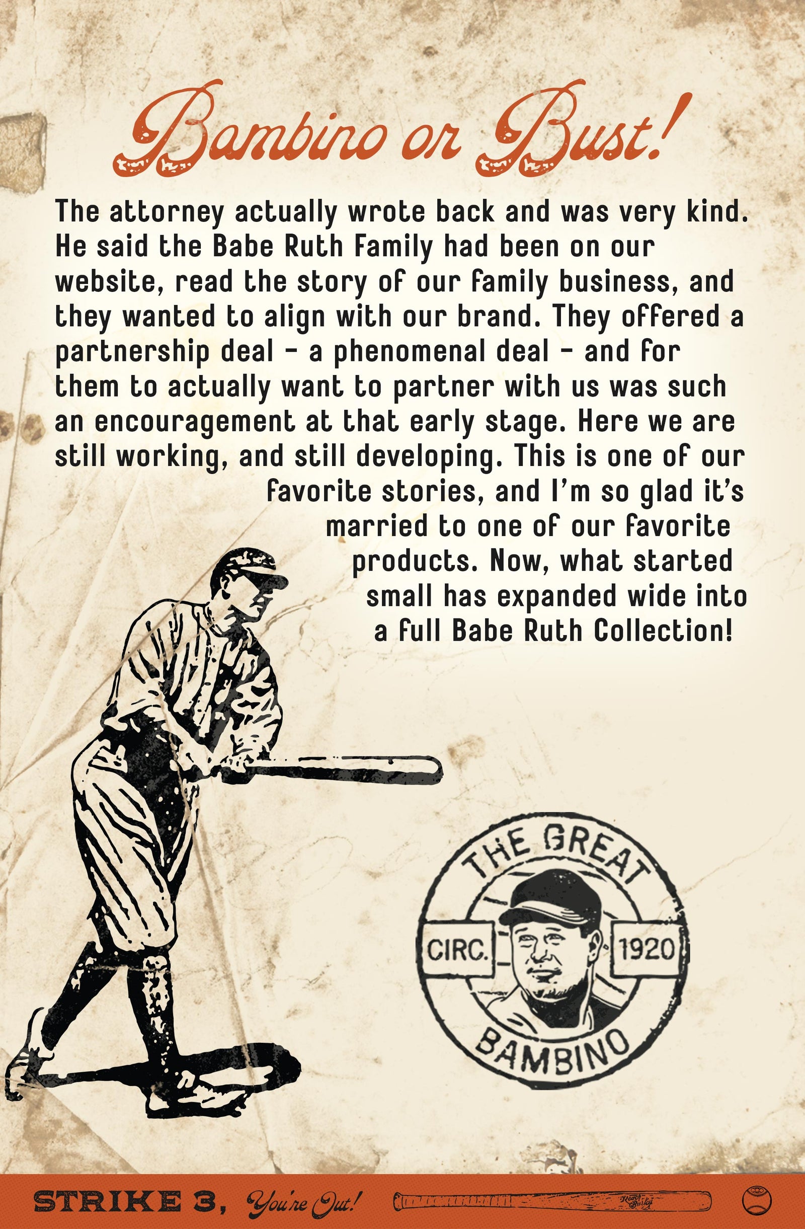 Babe Ruth trademark owned by the family of Babe Ruth and the Babe Ruth League, licensed by Luminary Group, www.BabeRuth.com