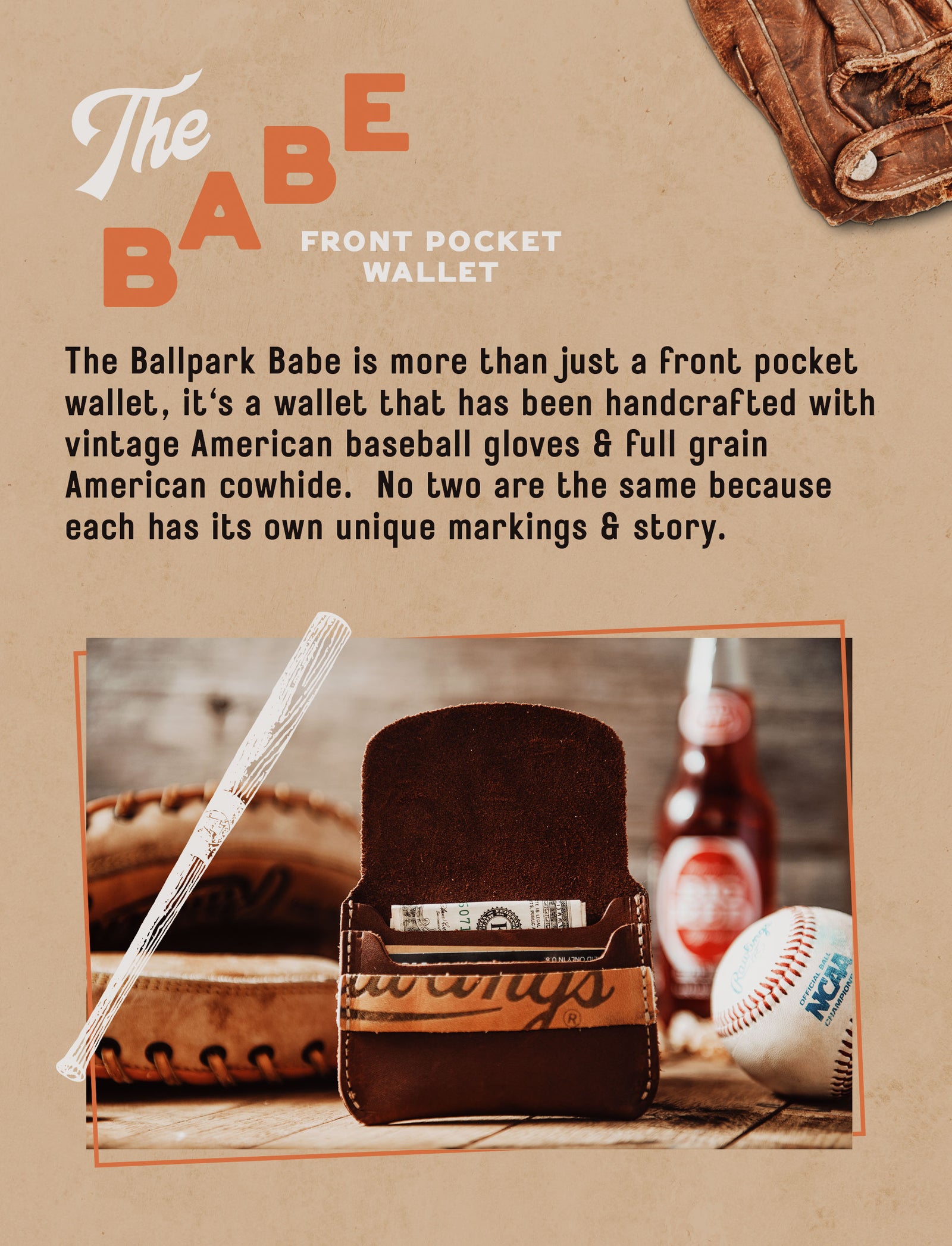 In tribute to the greatest past-time in American Sports we have created Vintage Baseball Glove wallets to remember all the sandlots and backyard games that shaped our childhood! This collection of wallets are completely unique, one-of-one designs. We only use leather baseball gloves that have been played with in a real game, and up-cycle the glove into a unique, beautiful wallet that you'll never find anywhere else.