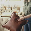 Full Grain Tumbled Leather Decor Throw Pillow