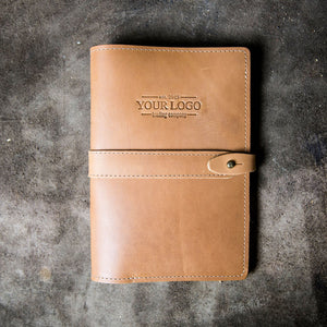 Our team is fully prepared to take your logo and turn it into a beautiful debossing on any of our corporate leather products. Simply send us your logo (preferably in a vector format) and we will generate a digital proof for your to approve. After that, we will use your logo to make a debossing die which will be heated to 400 degreees and pressed into the leather, leaving a crisp indent showcasing your logo.