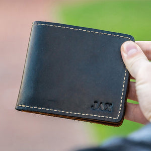 This wallet is handmade right here in our Huntsville, Alabama, shop with the finest of Full Grain American leathers. We hand–pick our leather hides from a local tannery for a rustic look and feel. Our leathers can vary in shades due to the way we have our leather tanned (the old-fashioned way).