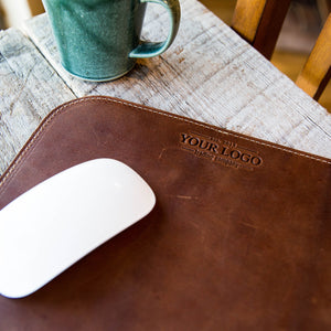 Our team is fully prepared to take your logo and turn it into a beautiful debossing on any of our corporate leather products. Simply send us your logo (preferably in a vector format) and we will generate a digital proof for your to approve. After that, we will use your logo to make a debossing die which will be heated to 400 degreees and pressed into the leather, leaving a crisp indent showcasing your logo.