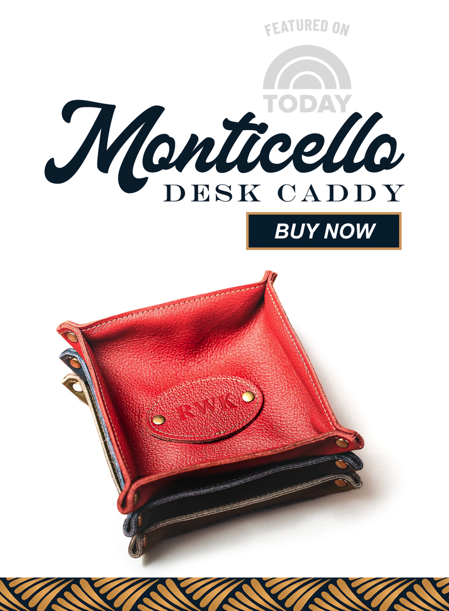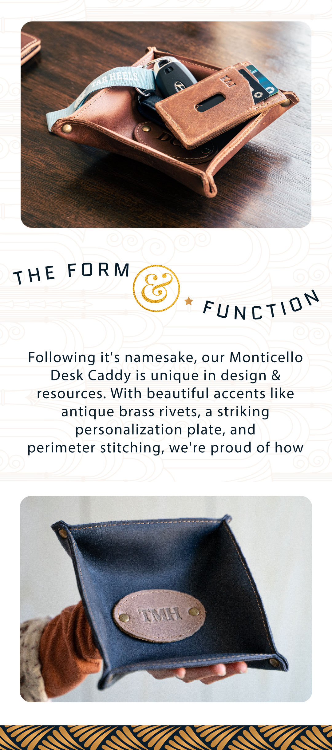 The Monticello Fine Leather Personalized Desk Valet Caddy Tray is made right here in our shop with the finest of Full Grain American leathers. We hand-pick our leather hides from a local tannery for a rustic look and feel. This is a gift that will be used and loved for a lifetime!
