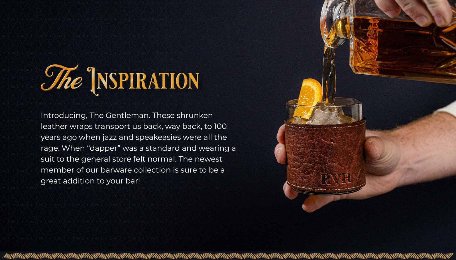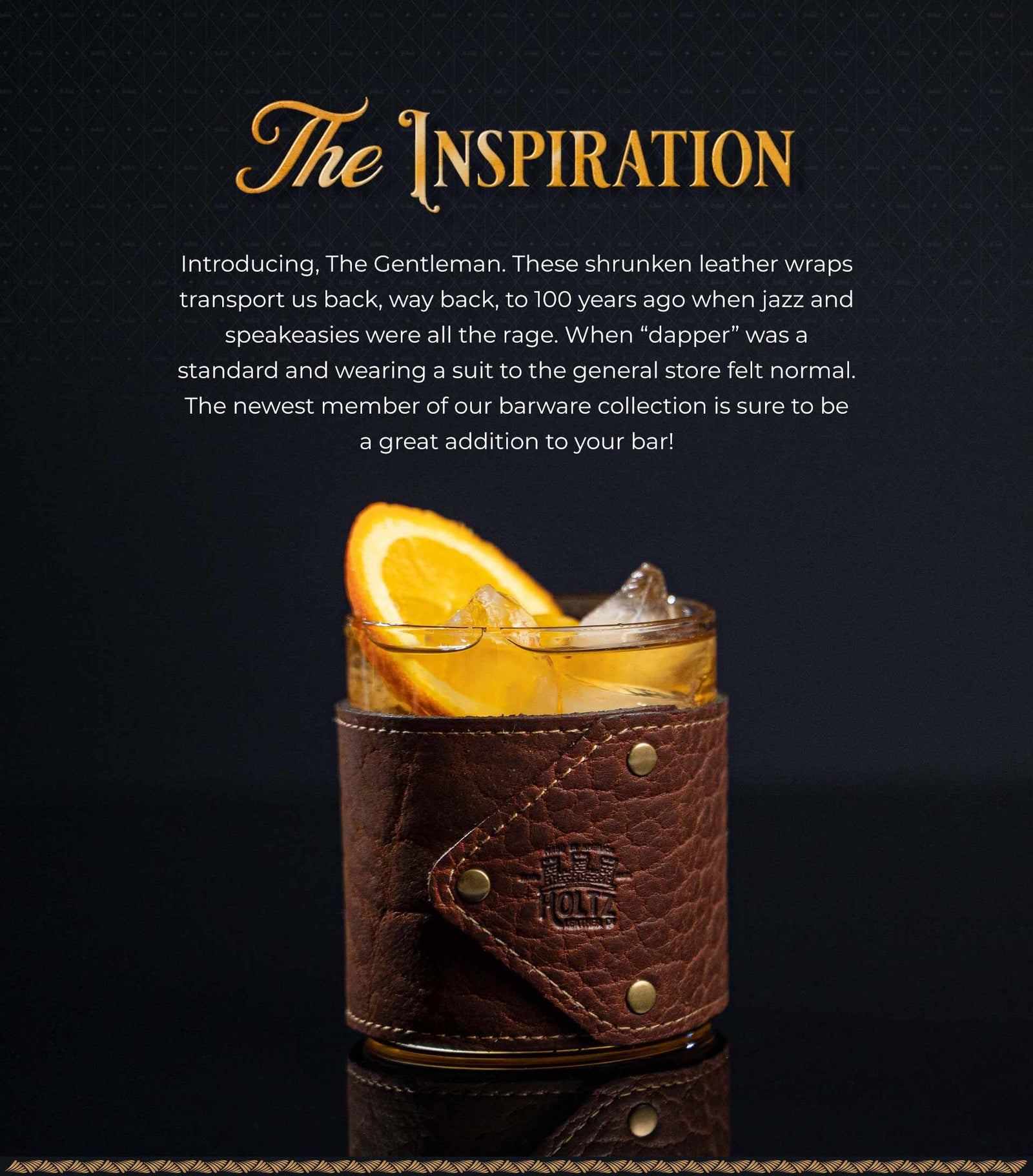 Introducing, The Gentleman. These full grain leather wraps transport us back, way back, to 100 years ago when jazz and speakeasies were all the rage. When “dapper” was a standard and wearing a suit to the general store felt normal. The newest member of our barware collection is sure to be a great addition to your bar!