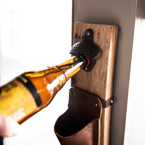 Creativity comes natural to some and others it requires some distilled goodness to loosen it up. Luckily, we had a stroke of creativity when creating the “Cooter Brown," a legend around the Mason Dixon. During the Civil War, he had family on both sides. Not wishing to be drafted by either side, he decided to get drunk - and stay drunk. Not quite that creative - our Tennessee Whiskey Barrel bottle opener features a removable leather cap catch. There are few things more frustrating than trying to dig your caps out of your cap catch mounted to the wall.