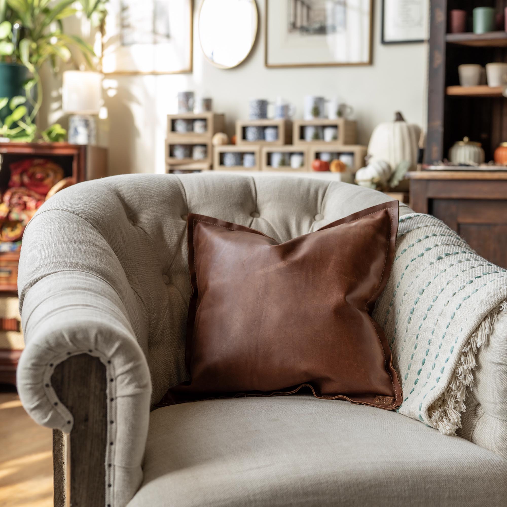 Decorate your home with the character of full grain leather. Each pillow cover is handmade from tumbled leather that’s soft, supple, and full of natural beauty. These throw pillows are comfort pieces that only improve with time.