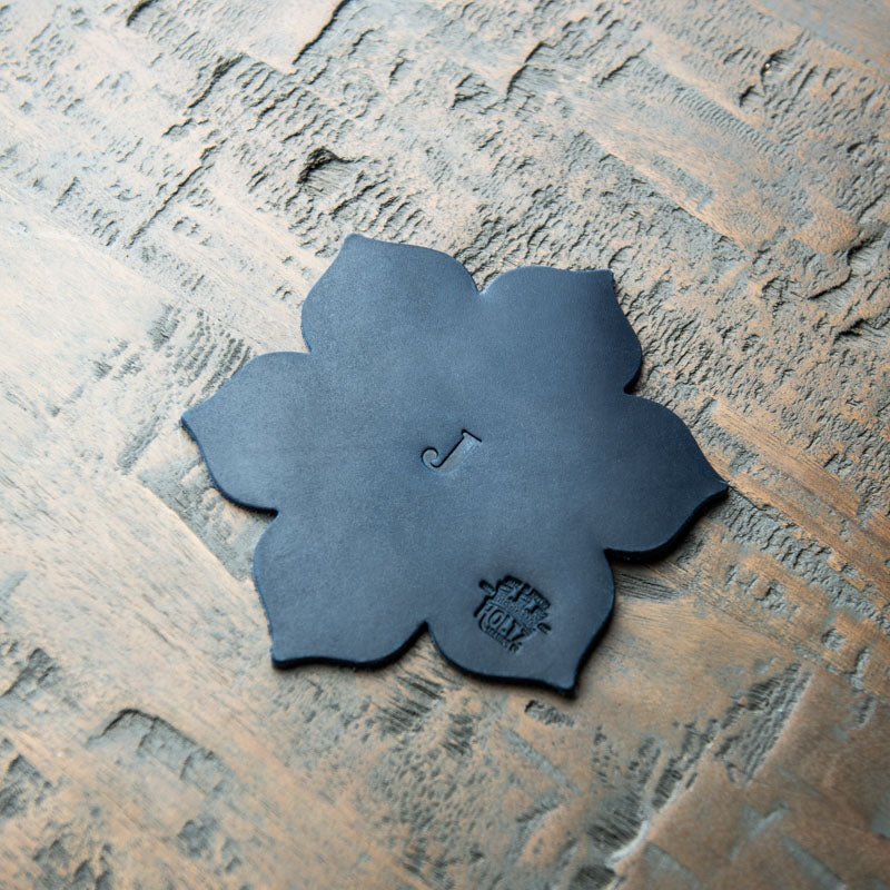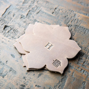The Magnolia Leather Coasters mimic the simple beauty of the magnolia tree's blooms. This set comes with four coasters, featuring a the six-pointed design of the flower. Made of Full Grain American Leather, these coasters bring that bloom's beauty inside your home. Add an initial for a personal touch!