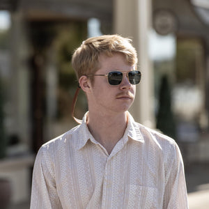 Hand crafted from full grain tumbled leather, with high-stretch silicone grips and solid brass rivets for a secure hold. This water-safe sunglasses strap is ready for beach days, lake trips, and everything in between.