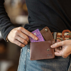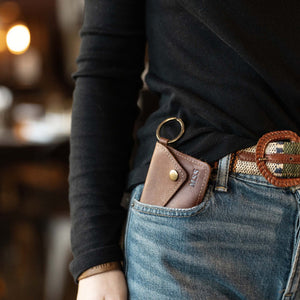 The Amelia Keychain Wallet is your grab-and-go companion for those busy days when you just need the essentials. Handcrafted from full-grain leather, it’s got a snap pocket to keep your cards and cash secure and a sturdy brass key ring for your keys. Toss it in your bag, clip it to your keys, or carry it solo for quick coffee runs or spontaneous adventures.