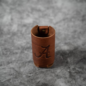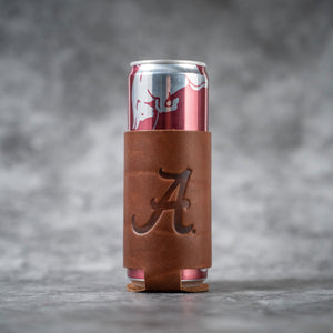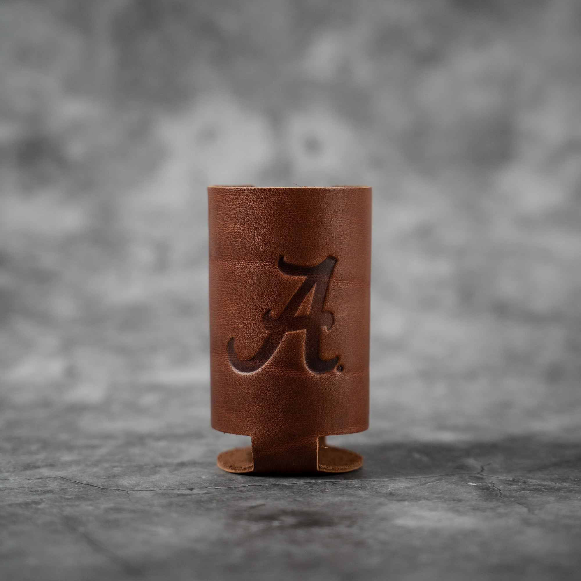Introducing the Blitz Coozie - the perfect accessory for tailgating, backyard barbecues, and everything in between. Made with the finest full-grain leather, this coozie is designed to keep your favorite beverage ice cold and easily accessible.