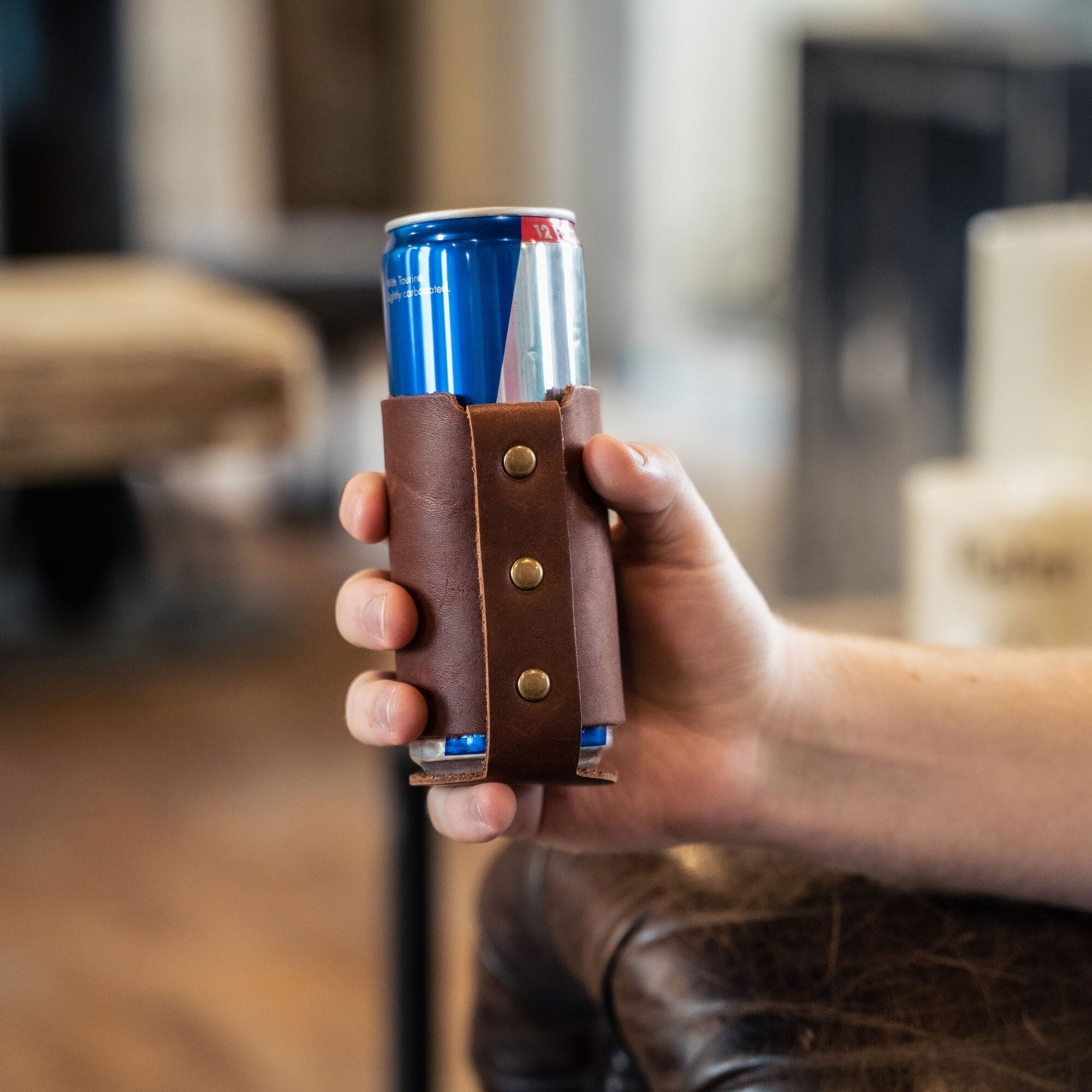 Introducing the Blitz Can Coozie - the perfect accessory for tailgating, backyard barbecues, and everything in between. Made with the finest full-grain leather, this coozie is designed to keep your favorite beverage ice cold and easily accessible.
