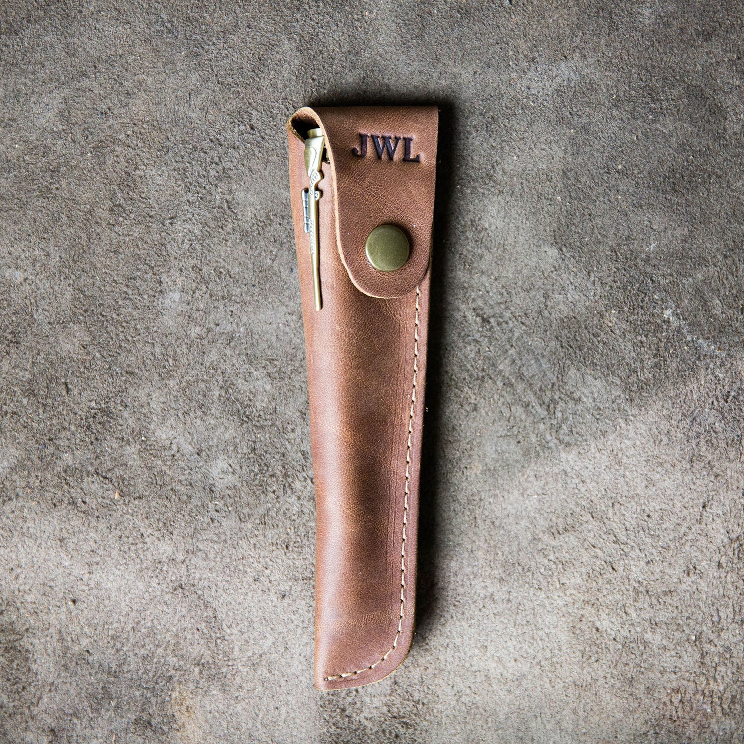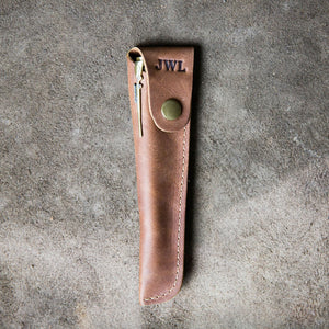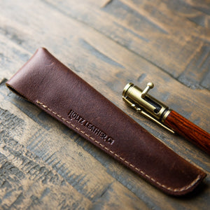 Write in dapper style with this hand-turned piece of art. This .30 caliber pen comes with a leather pen sleeve that can be personalized with your initials.