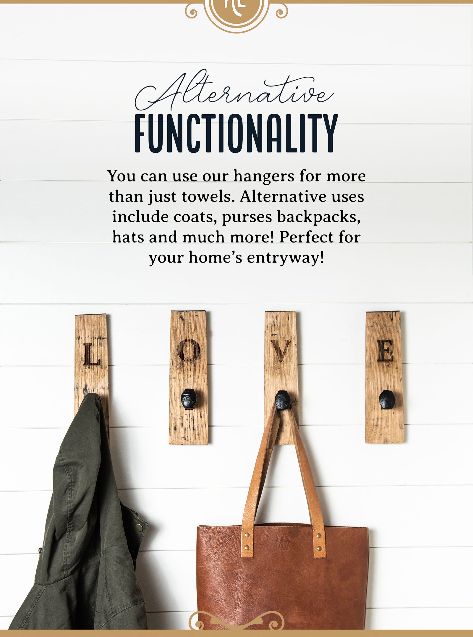 Our whiskey barrel stave coat hanger provides a perfect place to hang your hat, bag or just about anything that needs a place to hang. Made in the USA. Quantity discounts apply.