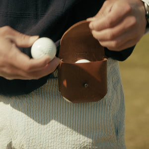 Tired of bulging pockets? Our Golf Ball Holster is made right here in Huntsville, Alabama and keeps your golf balls right where you need them—within easy reach. This simple, no-nonsense design holds up to 4 golf balls and features a front flap with a ball stud closure for quick access.