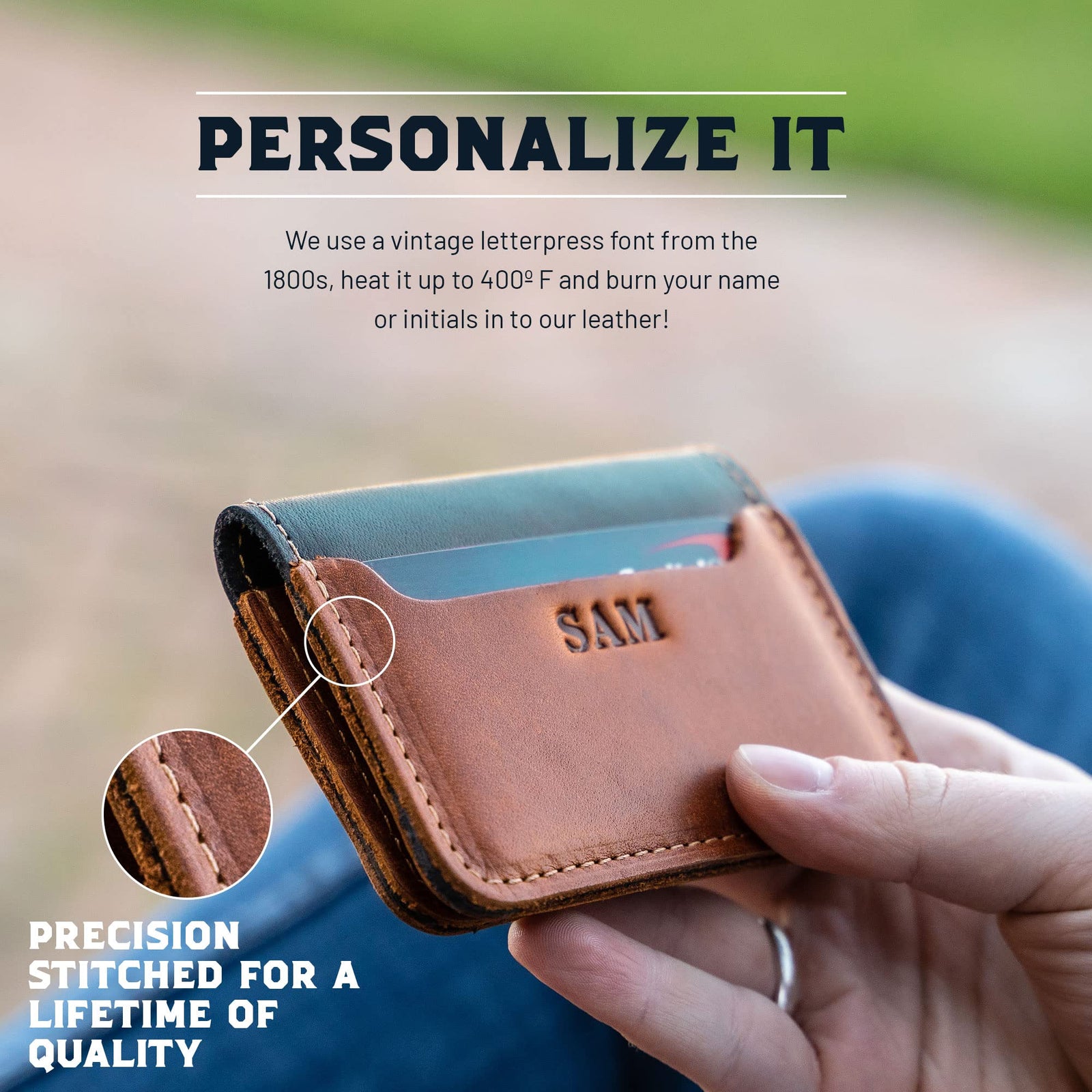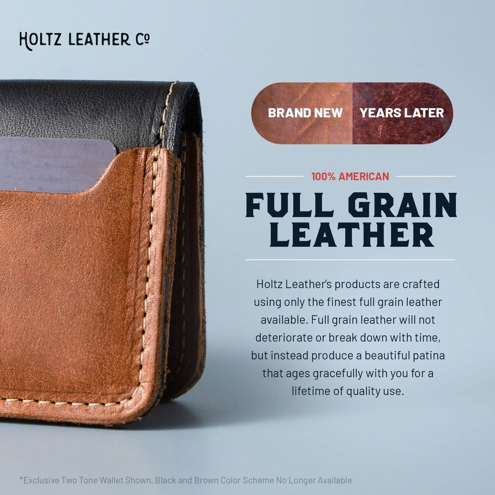 Our full grain leather products embody classic American craftsmanship and are designed to withstand the test of time. With skilled artisans meticulously handcrafting each piece, attention to detail is evident in every stitch and cut. The use of full grain leather - the highest quality leather available - ensures durability and a beautiful patina that only improves with age. Our commitment to quality craftsmanship means that our products are built to last a lifetime, or maybe two.