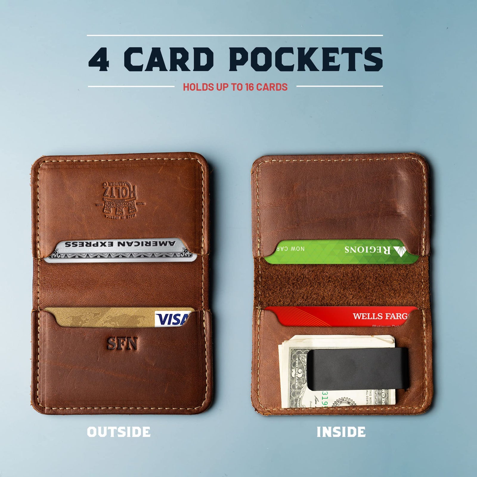The Gates men's wallet was designed to do more than traditional front pocket wallets. Made from full-grain leather, this wallet will stretch with use, allowing you to carry 16 cards or more.
