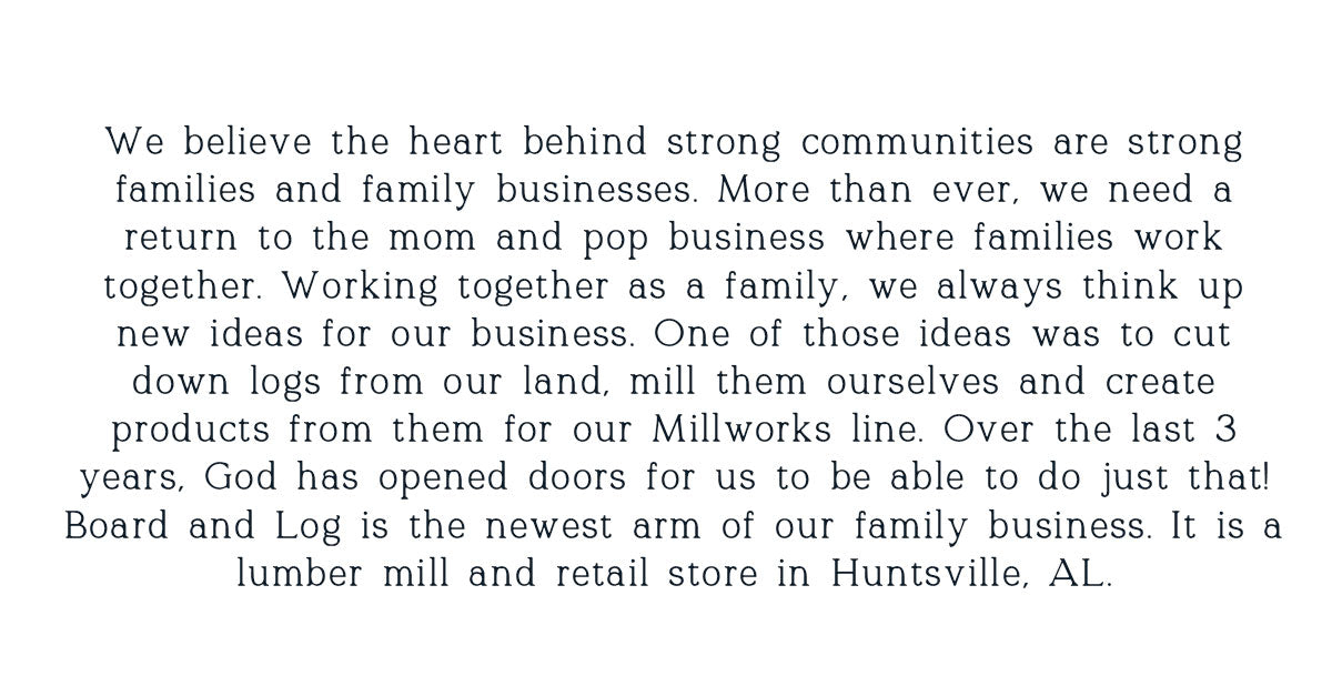Running our own mill allows us to use trees that have been cleared due to storm damage or real estate developments. These trees would have ended up in the landfill or burned, but Board & Log Co gives them a second life.