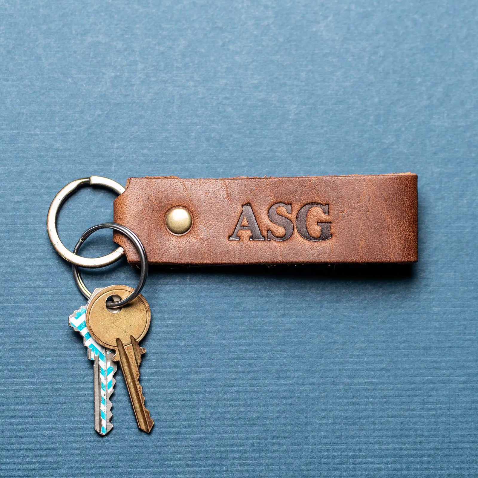 The Tucker Fine Leather Key Chain is handmade right here in our shop with the finest of Full Grain American leathers. We handpick our leather hides from a local tannery for a rustic look and feel. This is a gift that will be used and loved for a lifetime!