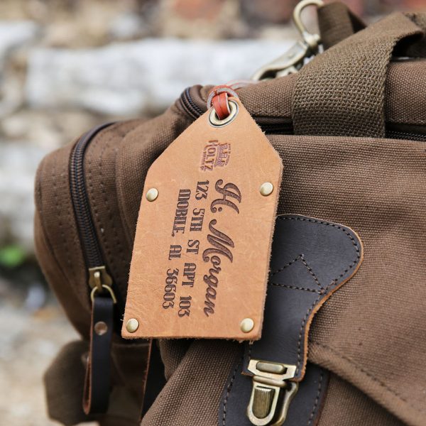 We personalize the Full Grain Leather with your name and address or phone number. Choose from two personalization options and add a touch of style to your luggage!