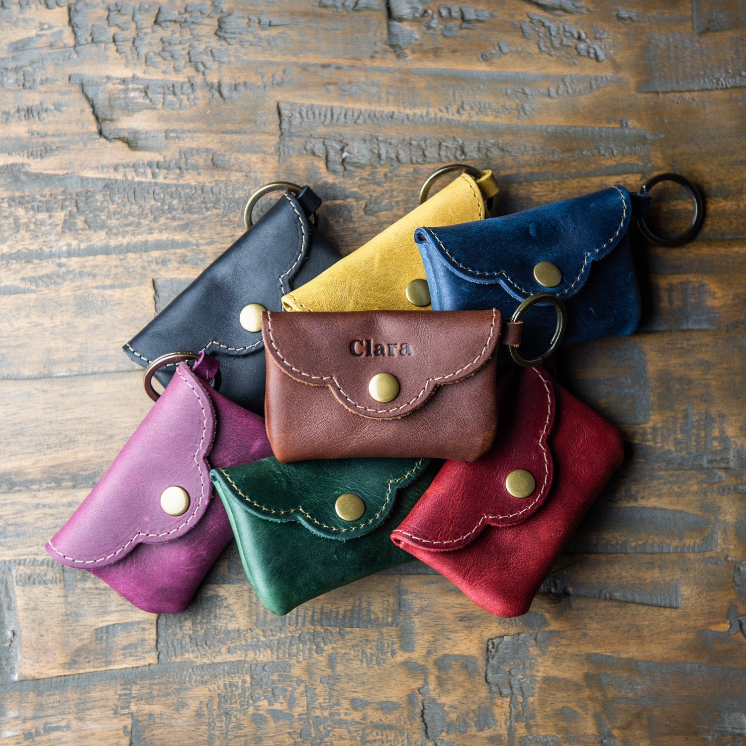 "The Rosie" keychain wallet is not only stylish but also functional. The compact size is perfect for holding essentials like cash, credit cards, and keys, making it easy for your bridesmaids to keep their belongings organized and within reach. The keychain feature allows them to attach it to their purse or bag, ensuring that they won't lose their valuables. "The Rosie" is the perfect accessory for any occasion, and your bridesmaids will love using it for years to come. So why not give your bridesmaids a gift that is not only beautiful but also practical and personalized? Choose "The Rosie" personalizable fine leather scallop keychain wallet for a truly special bridesmaid gift.