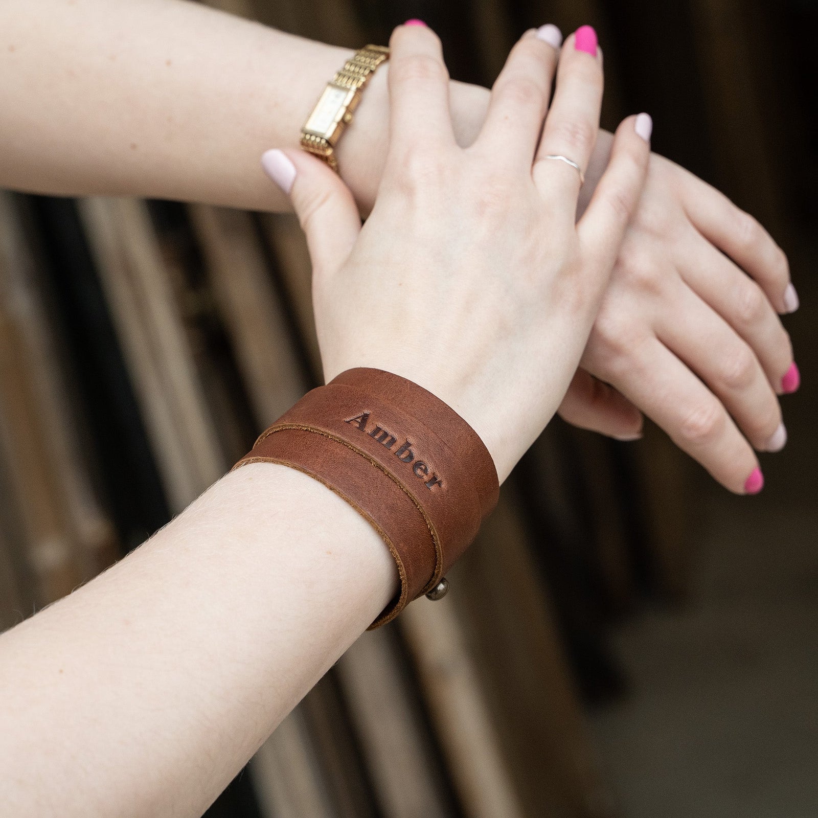 Introducing "The Dock" fine leather cuff bracelet, a beautiful and personalized gift that your bridesmaids will love. This stylish and modern cuff is made from high-quality leather and features a sleek and simple design that is perfect for everyday wear. Personalize each bracelet with your bridesmaids' initials or names, making it a thoughtful and unique gift that they will cherish.