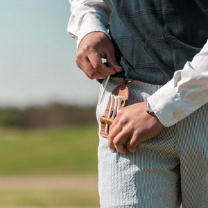 Our Golf Bag Tag & Tee Holder is the kind of gear that makes your round feel a little more put-together. Made from full grain American leather and built to last, it’s a sleek way to carry four tees right where you need them. No more digging through pockets or scrambling at the tee box!